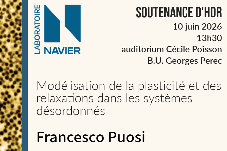 Francesco Puosi, chercheur dans l’équipe Rhéophysique et Milieux Poreux, soutiendra son Habilitation à Diriger des Recherches (HDR), le mercredi 10 juin 2026 à 13h30 dans l’auditorium Cécile Poisson de la Bibliothèque Universitaire George Perec.